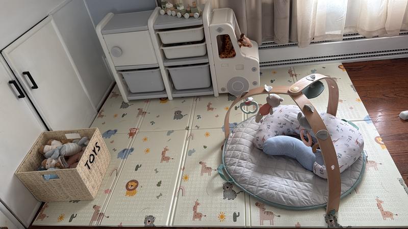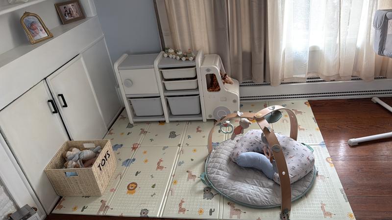 - Ample Storage Space: Includes bins, drawers, and a cabinet for organized toy and book storage.