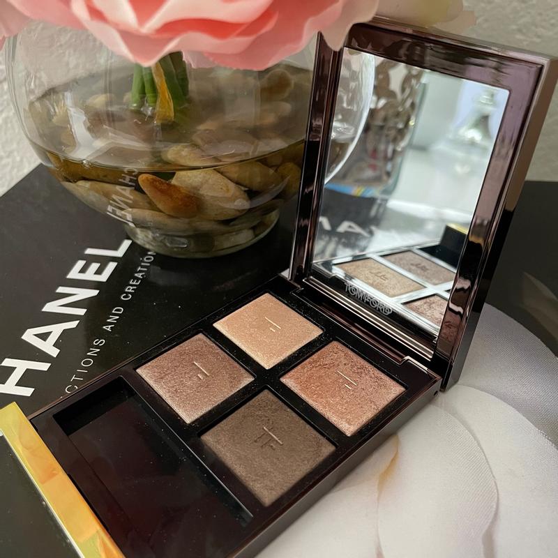 (This is the color Nude Dip but I could not find it) I own several Tom Ford quads and I really love them. You need to know what you're getting with this formula- it's not like other brands. This isn't about pigment like Natasha Denona or high impact like Pat McGrath. It has the same smooth metallic finish and the colors are somewhat reminiscent of the Enchanted quad in that they are neutrals, but Nude Dip has — true to its name — more nude and less plum. The ivory highlight and peach shadows are truly brightening, while the silky platinum taupe adds contrast. Pack on the brown in your creases and outer V of the eyes for a smoky effect. The minimal fall out and ultra buttery eyeshadow textures make this palette a winner!