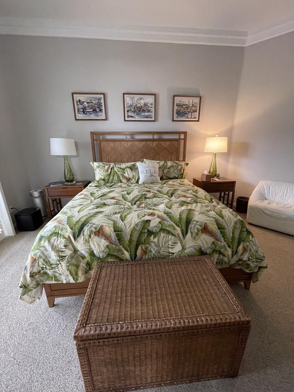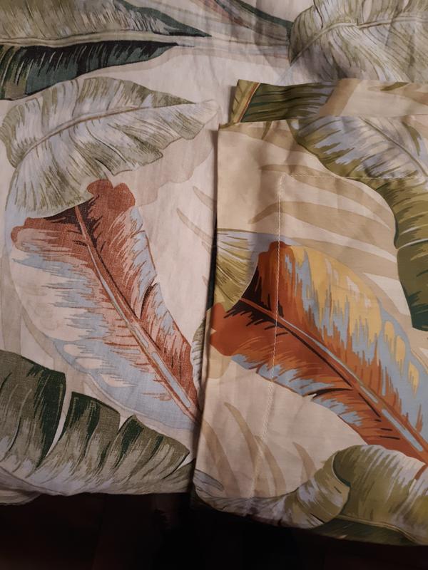 Very pretty duvet cover. Colors are very vibrant and goes well with our decor. Washes well and comes out of the dryer wrinkle free. We are planning to get another set of bedding from Tommy Bahama when we return to Michigan in May 2026.