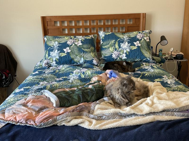 I love these Tommy Bahama quilts. They are the perfect weight and I love the designs. However, the color for the Southern Breeze is way off and doesn’t match the picture. It’s actually baby blue with mauve flowers so I returned it.