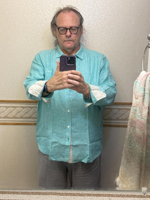 This linen shirt is very soft and comfortable. We always count on Tommy Bahama quality and this shirt is just another example of why we have several.