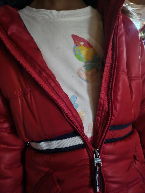 This coat was stylish and beautiful on my granddaughter. In our cold and or balmy climate it was warm enough but lightweight enough for her to wear to school. She could dress it up or down.