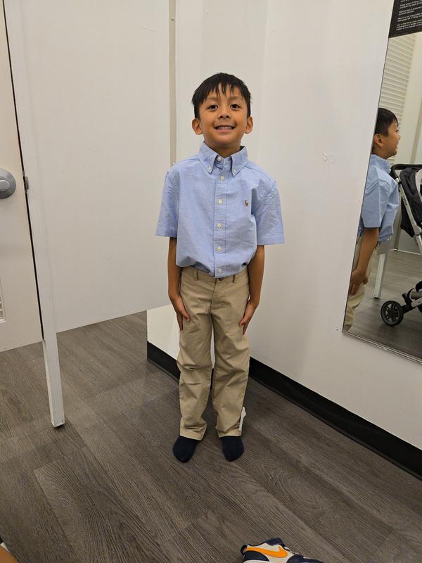 Fashioned for fall, this Tommy Hilfiger shirt features a chambray trim in a smart-cute look. It's paired with prewashed navy joggers, offering a comfortable fit that's perfect for cooler days.