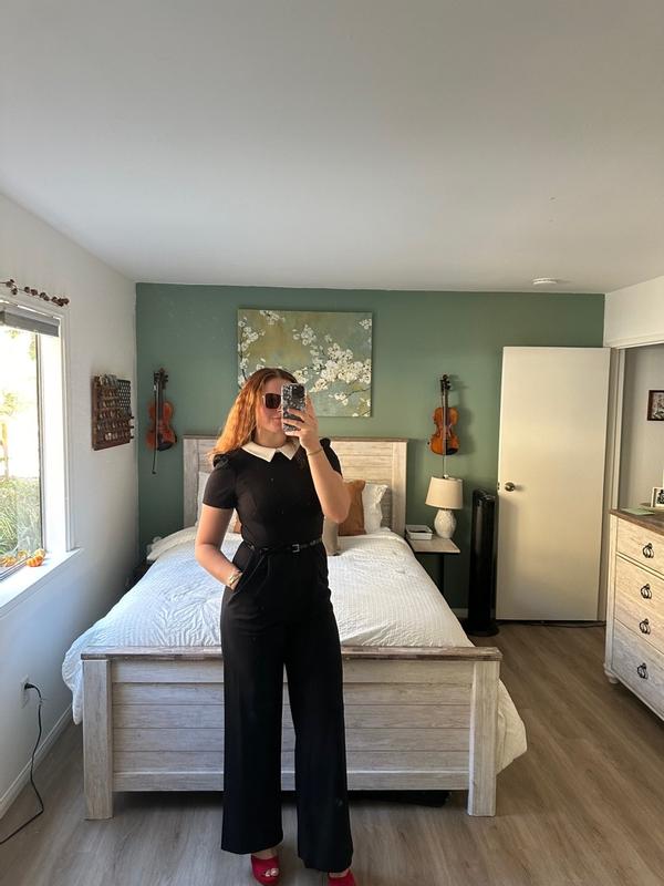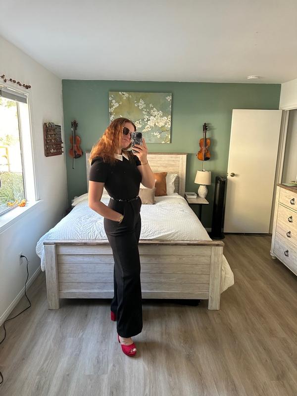 Loved wearing this jumpsuit for a recent job interview… made feel very powerful! Pros: Flattering design Good heavy material Pockets Cons: Super long- had to get it hemmed. Hard to zip all the way up, not impossible