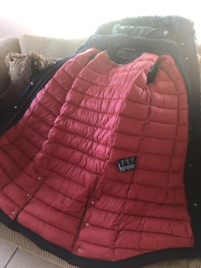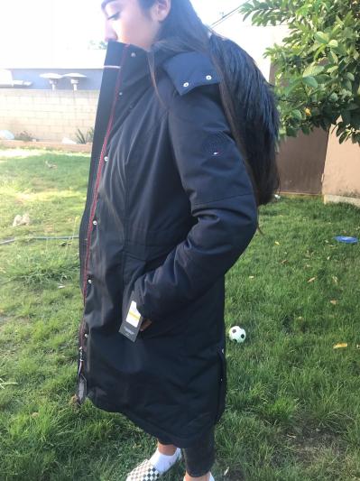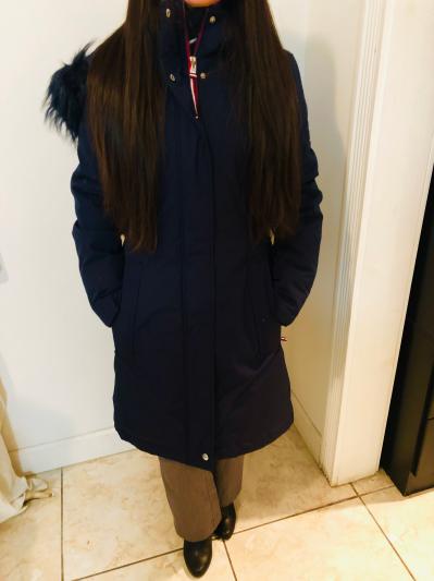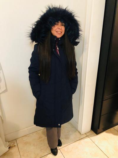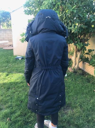 I can’t say enough about this jacket, I love the material. The fur- lined hood and cinched waist. It’s so stylish, cute and oh so warm. I received it in blue and it’s a beautiful color, I can see this jacket lasting for a very long time.