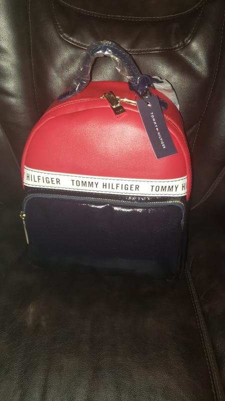 This bag is very cute and trendy! The quality is great and I like that it's well made and durable and with a nice thick stitch. The zippers are of great quality as well and are pretty thick durable zippers and is easy to zip and unzip the bag. The straps are adjustable and durable as well and I like that there is a handle on top of the bag for easy carry. The main color of this bag is red and navy blue. This bag has a front pocket,the bigger main pocket and with a smaller zipper pocket on the inside as well as a opened pocket. The bag is easy to wipe clean and is made of a PVC material. It has the Tommy branded logo hang-tag on the bag as well as the branded tag inside the bag. This bag holds quite a bit of items for being a smaller backpack. So far I do not see any cons with this bag and I would recommend this Julia Dome Tommy bag it's super trendy and great quality and I am very happy with it!