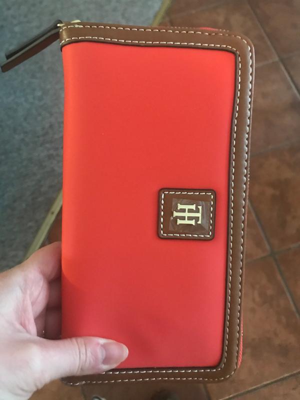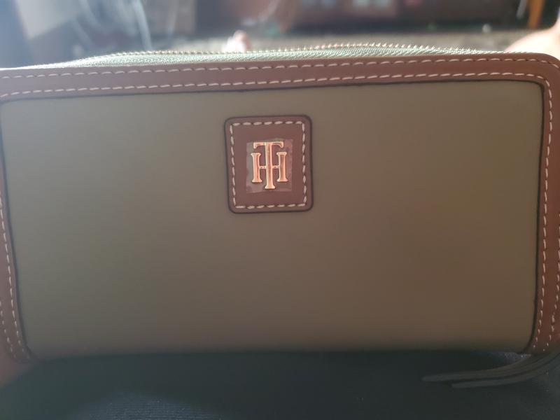 I have the Tommy Hilfiger s l g the Julian large Zip wallet nylon. I love how the nylon feels extremely durable I love how it has a full wrap around zipper. I love the craftsmanship the wallet I love also the little that is on it with the initials of Tommy Hilfiger on the front of the wallet. I love the craftsmanship of this Stitch work on the front and all around the wallet beautifully done. Inside the wallet you have your basic the cards go there's like 12 slots there's another two more openings and in the middle where you can put your cards and your coins. I love how the color in the inside of the wallet is blue and red with that incredible Stitch workmanship throughout the wallet I had a friend of mine come when this came she fell in love with how it's felt and looked and she bought it for herself. Thank you . #Tryit.