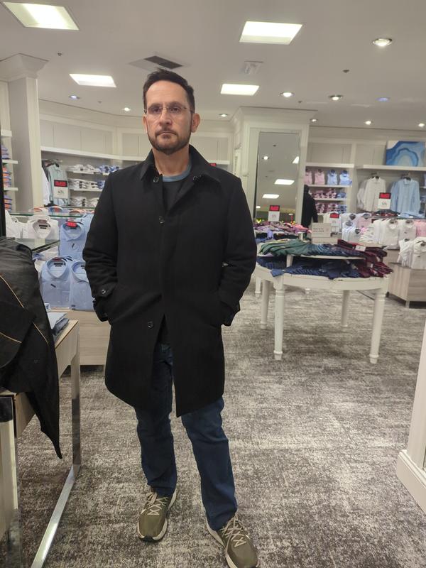 Great dress coat for men. Not a car coat but not a long dress coat either. My husband is not tall and this coat fit him perfect .