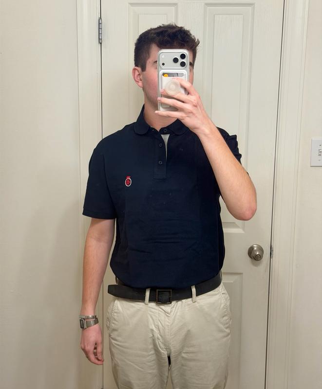 Verynckfmtanke cotton polo for everyday wear. Breathable and true to size. It’s a classic polo shape odorless cotton. Cool logo design very unique!