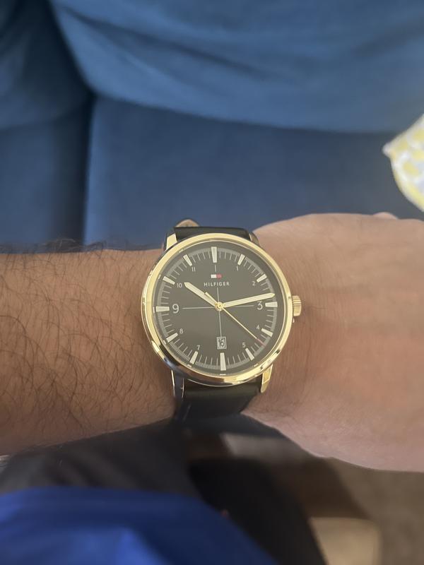 Tommy HilfigerMen's Black Leather Strap Watch 44mm