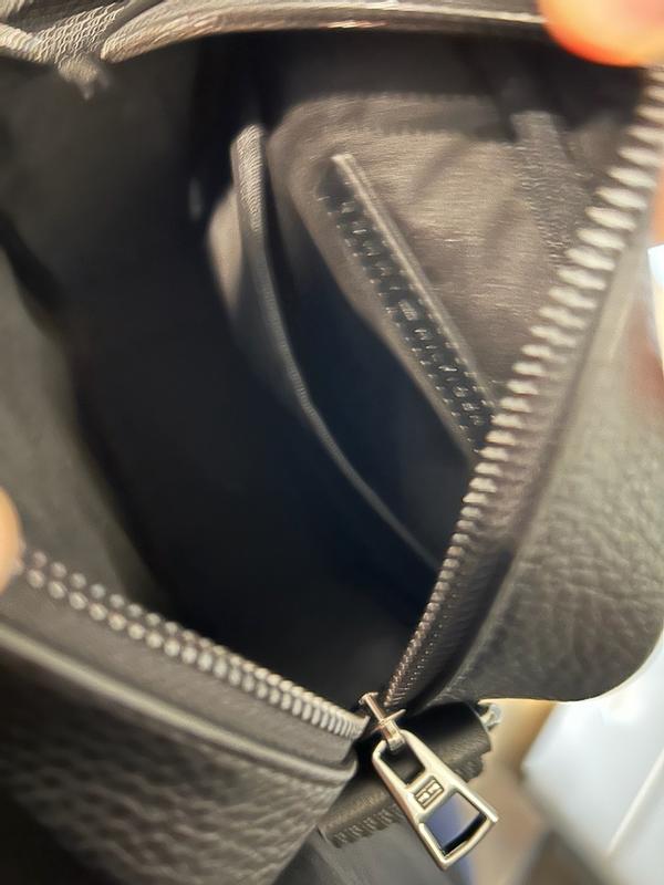 Tommy Hilfiger doesn’t disappoint or skimp on the quality with this bag. The leather looks, feels, and smells nice. Even the zipper is better than most. It’s neutral enough that it’s fine for either gender too. Pretty simple design with one little divider in the main compartment. Overall very happy with it!