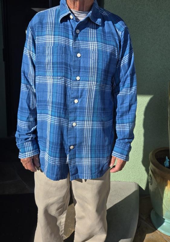 This shirt has been relaxed and textured so it's less of a stiff button-down shirt and more of a weekend shirt but I feel like they relaxed and textured it to a point that it feels more like pajamas. These days I appreciate anything made out of 100% cotton. The buttons seem unnecessarily huge which once again gives into the overall pajamaness of it.
