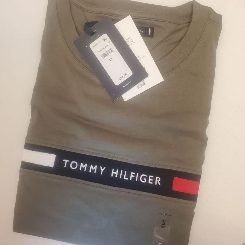 Elevate your wardrobe with this versatile staple from Tommy Hilfiger. Crafted to flatter and fit just right, this short sleeve tee is a must-have for every style-conscious individual. Made from all-cotton, it offers supreme comfort. Featuring the iconic linear flag Tommy Hilfiger logo across the chest, this tee effortlessly embodies the brand's timeless aesthetic.