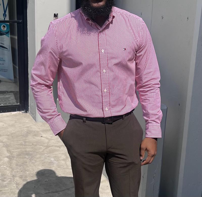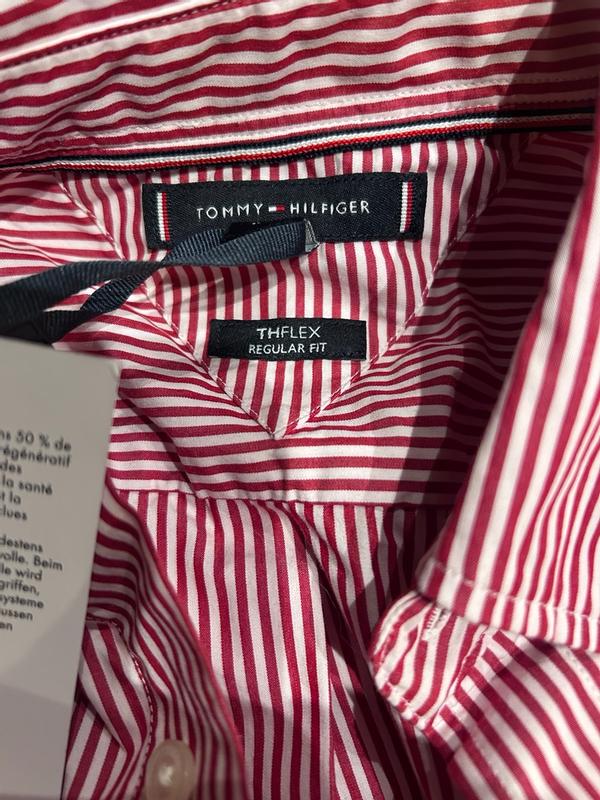 The Tommy Hilfiger shirt shows excellent stitching with neat, durable seams. The texture feels smooth and refined, giving it a premium look. The material is high-quality and breathable, making it comfortable for all-day wear. The fit is well-tailored without feeling too tight, offering a modern and flattering silhouette. The fabric has a balanced weight—light enough for comfort yet substantial enough to feel well-made.