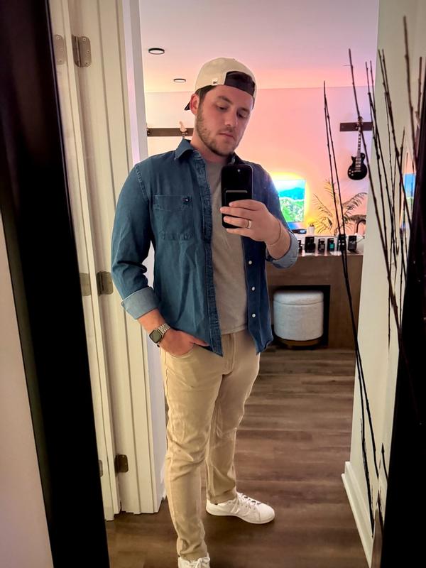 I’m really impressed with this Tommy Hilfiger denim shirt. I’m wearing a size Medium and the fit is spot on. it’s relaxed enough to move in but still looks sharp and put together. The best part is definitely the fabric. Usually, denim shirts can feel pretty stiff at first, but this one is surprisingly soft and has a nice weight to it. It’s perfect for layering over a white tee or just wearing on its own. It definitely feels like a high quality piece that’s going to last a long time. Definitely worth adding to the wardrobe!