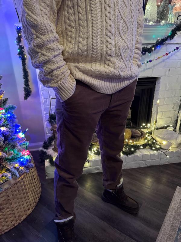 The weight of these pants lets you know you’re wearing quality corduroy. The fit is true to size and there is a stretch to the legs that makes them feel comfortable and could be able to wear them endlessly. The tight corduroy pattern is stylish and timeless.