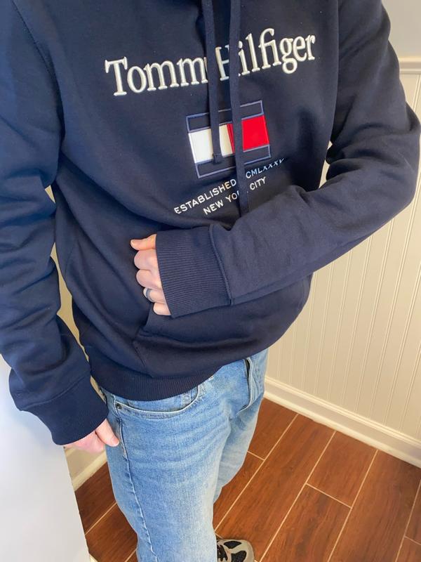 Love this Tommy Embro Flag hoodie. Clean, classic look that works with anything. It feels very comfortable and warm without being too heavy. I haven’t washed it yet, but based on the fabric and construction it seems durable. Nice weight, pullover style with no closure. Easy to care.