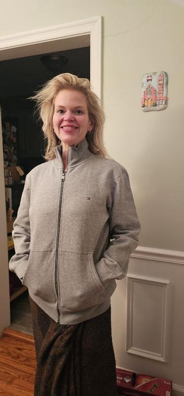 This sweatshirt is giving chill vibes but make it stylish. The fleece is super soft, and the fit is perfect for layering or wearing solo. I love the signature Tommy logo for that iconic touch. Whether lounging or running errands, it’s effortlessly versatile. Bonus: the zipper feels sturdy, and the pockets are roomy enough for your essentials. Definitely a wardrobe staple!