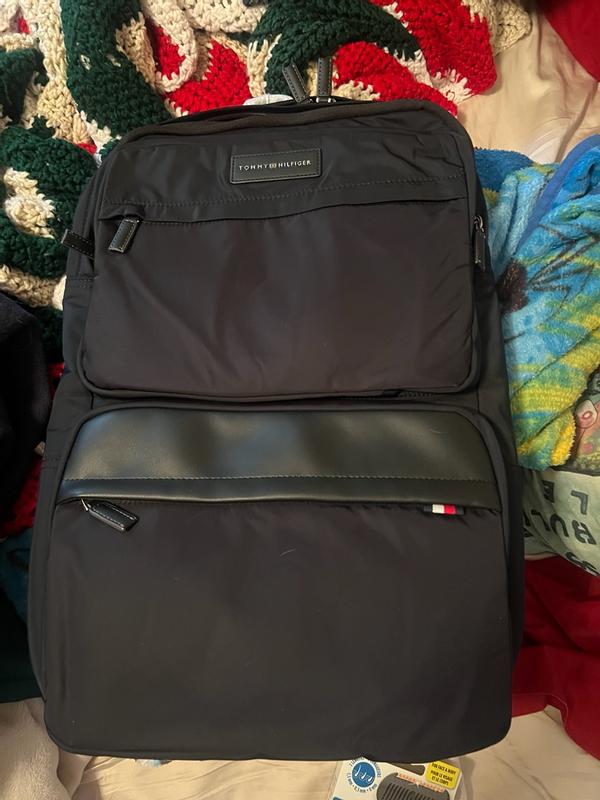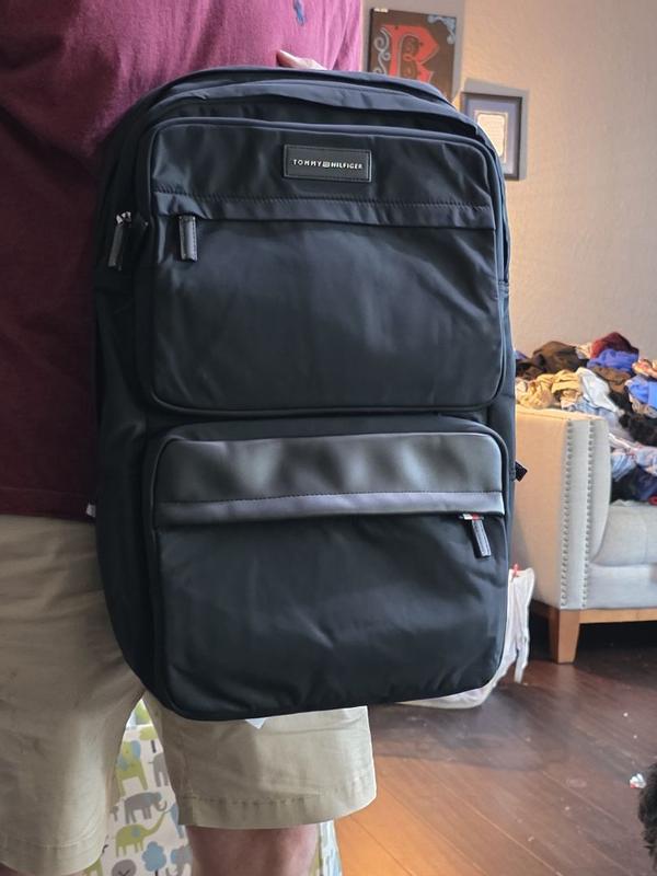 I love how big is this travel backpack from Tommy Hilfiger and how many compartments are on the front. Im a MOBILE Stylist and this bag is perfect.