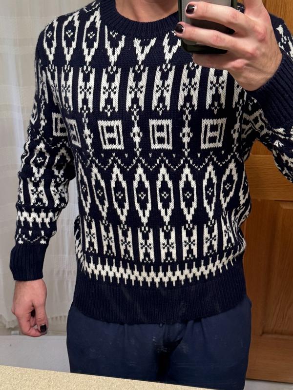 Tommy Hilfiger has made another amazing and timeless piece! The Medium size fits perfectly with enough comfort and warmth to wear in the winter months. This design is a classic for any winter celebration!