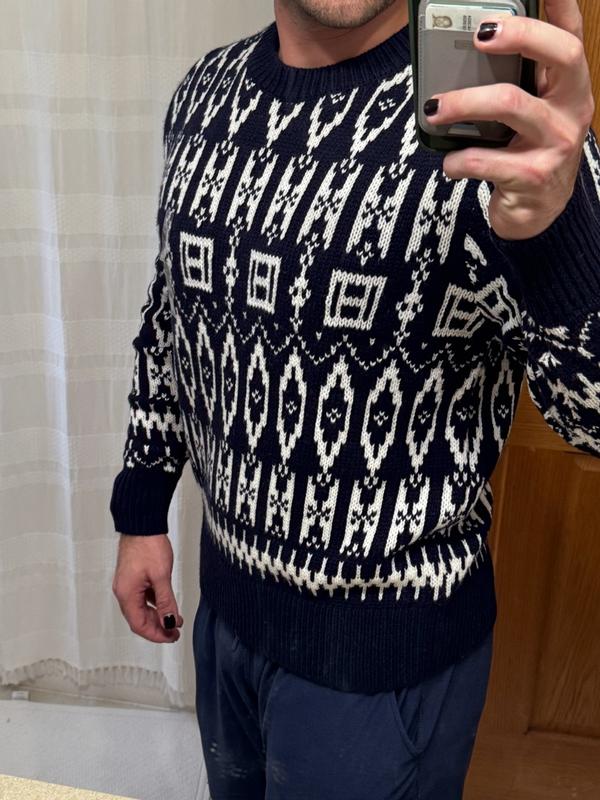 The Tommy Hilfiger Wool-Blend AOP Fairisle Crew feels warm, soft, and well-made. The classic Fairisle pattern adds a cozy winter look that’s perfect for the season