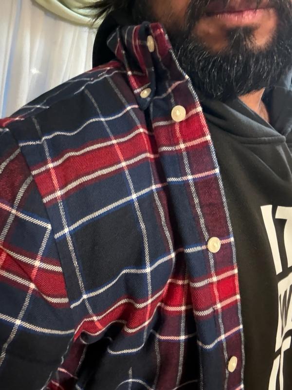 Tommy Hilfiger Tartn check plaid flannel shirt is so comfy and cozy. This runs true to size and fits me perfectly. The fabric is very comfortable and cozy, great for fall and winter. There is one standard size pocket on it. The best part is the color combination. It looks so cool.