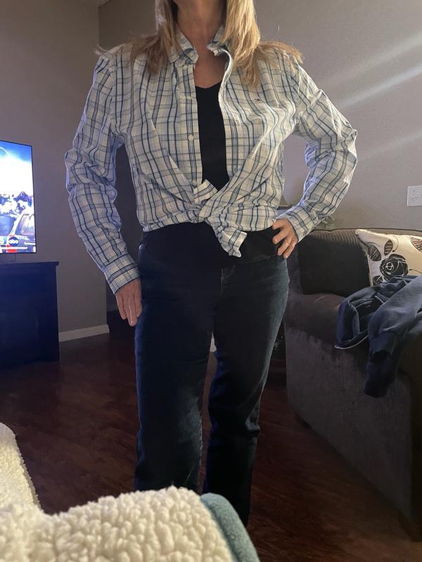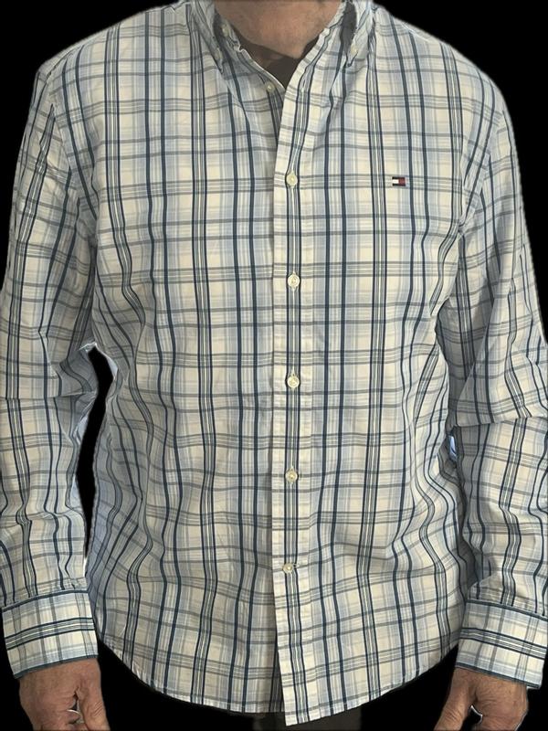 This Tommy Hilfiger poplin shirt is so soft and washes well. I enjoy wearing men’s slightly oversized shirts as casual wear. The colors are primarily blue and white, absolutely fabulous.
