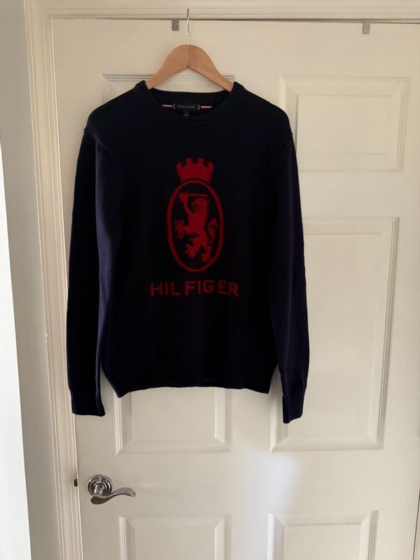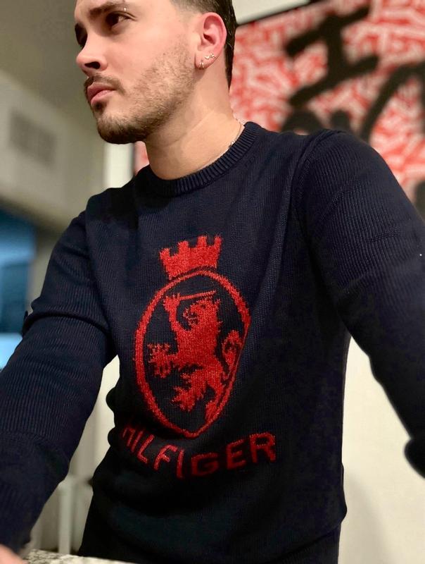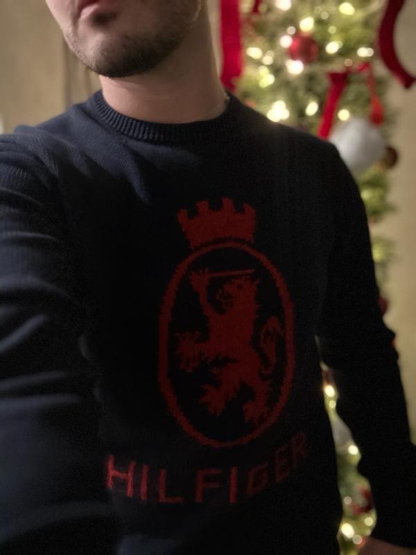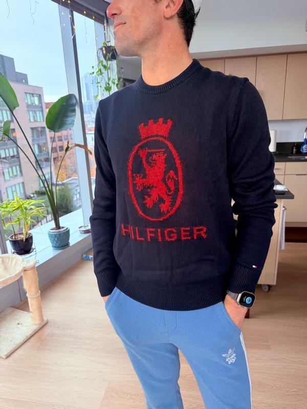 This Tommy Hilfiger sweater blends classic prep with everyday style. The navy knit makes a clean, versatile base, while the bold red crest across the chest gives it a classic look. It has that signature Hilfiger heritage vibe—timeless, confident, and slightly sporty. Looking forward to wearing it over the holidays.