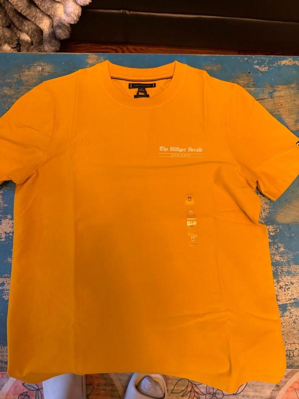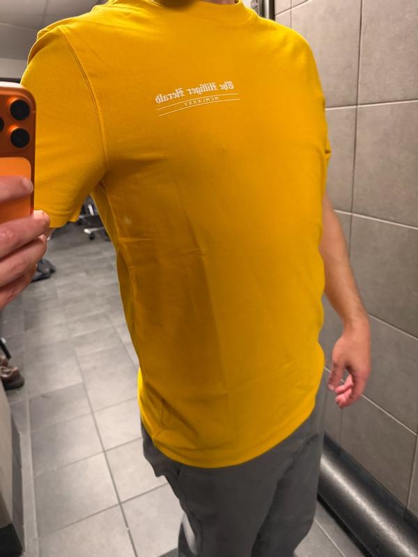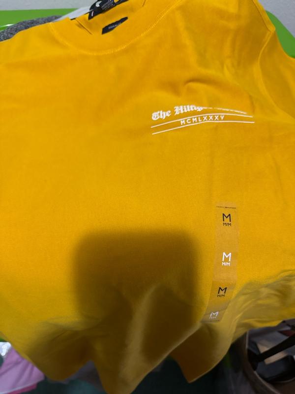 This shirt is the perfect soft fit with a thick material. My favorite kind of shirt. Soft & not thin T shirt. The fit is a regular fit and my medium size felt a good true to size in a medium regular fit. A unique yellow color. Overall I really like this shirt. Really well made. If I could change one thing is I’m not big on graphics on the back, but they blend in nicely. Great shirt!!!