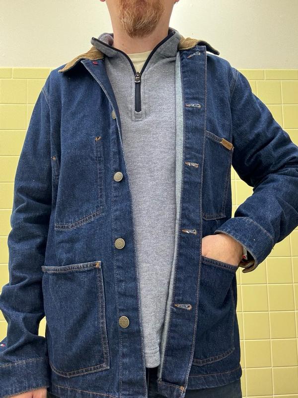 This chore jacket from Tommy is such a good piece for the fall. The fit is fantastic, I love the little details, and the coat looks great. I love the collar as it just really makes everything pop with the indigo color of the jacket itself. The buttons feel good and the denim is light enough that you don’t feel overweighted but durable enough so that it won’t fall apart. The coat is probably perfect for 60 degree weather. Any lower and it may not be warm enough as it is not unlined or you may have to layer. Sizing is a regular fit. Not too slim. If you want oversized go up a size. If you want a slim fit go down a size. Overall I really like this coat. It’s good quality and looks great.