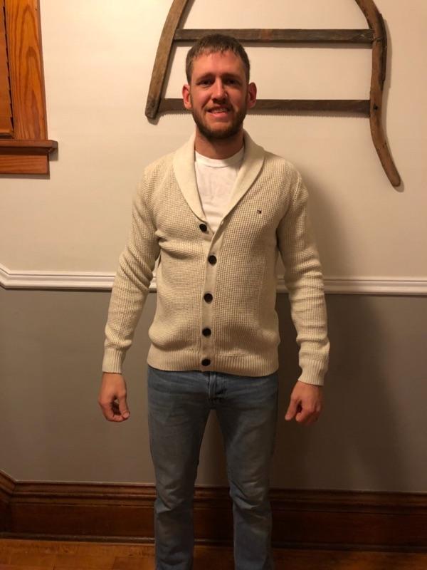 I got this sweater for my husband so he could have a slightly more preppy, put together look if the need should arise. He grumbled when he saw the rolled neck, but still put it on over a button down shirt. He was surprised at how thick and comfortable this sweater was, and more importantly, that he didn't have to iron his shirt underneath! The quality seems great, though we haven't washed it many times yet, and the style is wonderful. I love that he now has a different look if he needs it.