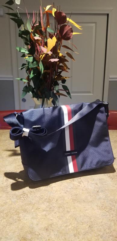 As a teacher, I have lots of paperwork to carry to school everyday. I usually carry everything in a tote bag. When I received my Tommy Hilfiger messenger bag to try, I felt all excited to use it this school year. I look so more professional! I love the beautiful blue color to start with. I am impressed with the Codura nylon material. Rugged fabric but I love the feel...Such high quality. There are two ways to use it, carry it with it's durable handle or my preferred way, with the adjustable, comfortable shoulder strap. Comes with a snap closure where I keep my keys and my teacher ID. Inside, there are plenty of very roomy inner pockets for my phone, etc. There is a zippered pocket I am using for my pens/markers. And still plenty of space for my tablet. Keeps all my necessary items organized inside. I am a satisfied consumer of Tommy Hilfiger products and it is all my husband buys. Would highly recommend to everyone. Classic bag that will last a long time. Thank you for this opportunity.