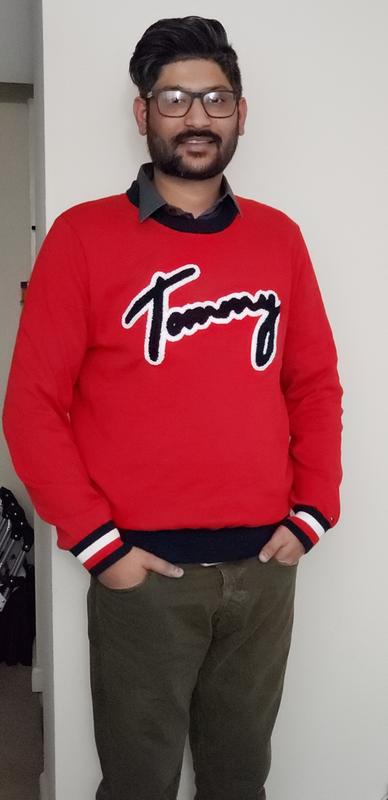 The Lawson Crew is a great sweater that is very comfortable and stylish. The stitching is lined perfectly and the fabric is soft and plush. The Blue and White Tommy Logo looks great on top of the red background.