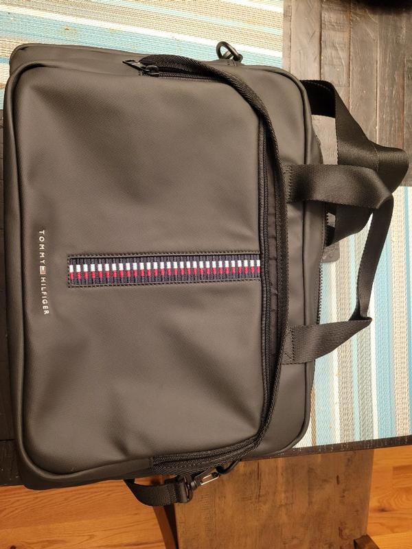 The **Tommy Hilfiger Corporate Computer Bag** strikes a solid balance between functionality and style, aligning well with the brand’s reputation for combining classic American design with modern needs. As a computer bag, it’s crafted to meet the practical demands of the professional on-the-go, while still exuding a polished, preppy aesthetic. First, in terms of **design**, the bag embodies the classic Tommy Hilfiger look, featuring the brand’s signature logo and iconic red, white, and blue color palette. Its clean, minimalist design makes it versatile enough to complement both business attire and casual wear. The material feels premium, typically made from high-quality synthetic fabrics or leather, providing durability while maintaining a sleek appearance. The stitching and hardware are well-executed, giving the bag a sense of durability and sophistication. Moving on to **functionality**, the bag is quite practical for everyday use. It includes a padded laptop compartment that comfortably fits most laptops up to 15 inches, providing ample protection during commutes. The interior is well-organized, with multiple compartments for documents, chargers, phones, and other essentials. There’s also a handy front zip pocket for quick access to smaller items. The overall layout is intuitive and helps keep things organized, avoiding the clutter that often plagues less thoughtfully designed bags. The **comfort factor** is another strong point. The adjustable shoulder strap is padded, making it easy to carry even when the bag is fully loaded. The handles are sturdy and comfortable to grip for those who prefer carrying it by hand. However, it’s worth noting that the bag might not be ideal for longer trips or if you tend to carry heavier loads, as it lacks the more robust ergonomic features found in high-end travel bags. One of the standout features of this bag is its **versatility**. It transitions easily from the office to more casual settings, thanks to its understated yet stylish design. Whether you’re headed to a business meeting, working at a café, or catching a flight, the Tommy Hilfiger Corporate Computer Bag fits the bill. On the downside, some users might find the storage capacity slightly limited if they are looking for a bag that can carry more than just the essentials. If you're someone who carries a lot of tech gadgets, files, or extra items daily, this bag might feel a bit restrictive. In terms of **pricing**, the bag sits in the mid-range, which reflects its brand value and quality. It’s a solid investment for those who prioritize style, brand reputation, and moderate functionality over ultra-high-tech features or massive storage capacity. In conclusion, the **Tommy Hilfiger Corporate Computer Bag** is an excellent choice for professionals who value aesthetics, brand recognition, and functionality in their everyday accessories. While it may not offer the extreme durability or capacity of a rugged travel bag, its sleek design and practical features make it perfect for daily commuting and short trips. Its balance of style and utility makes it a great companion for the modern professional.