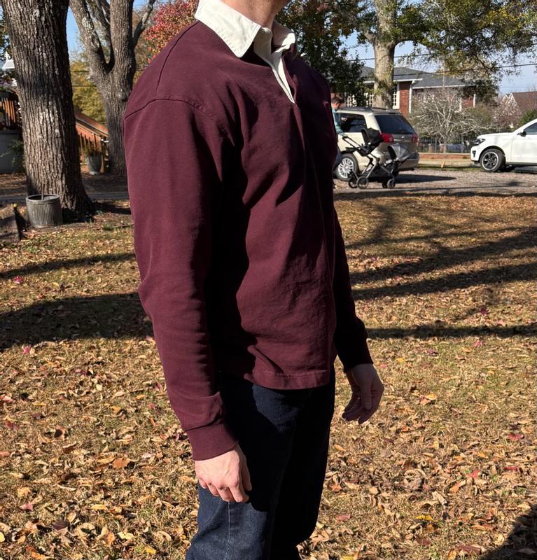 this is a well-made, rugby shirt. I really do like it. I think it’s a good quality. It’s gotten the nice kind of vents on the side that give it a more authentic rugby look and the collar is white and of good quality. My only grip is that the logo is incredibly big and quite obnoxious and so I wouldn’t wear this in public as much as I would like to because other than that it’s a good rugby shirt