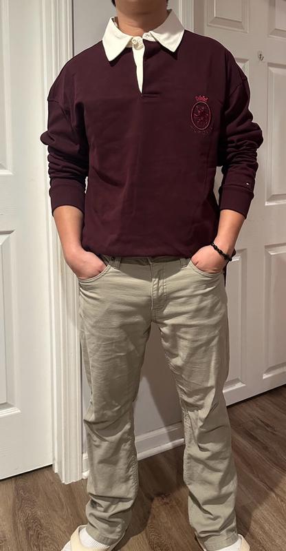 The Tommy Hilfiger Peached Crest Solid Rugby blends classic prep style with modern comfort. Its soft, peached cotton feels premium and durable, while the bold crest adds timeless appeal. Perfect for casual outings or layering. I got a size M for a baggier look but S should be a better fit.