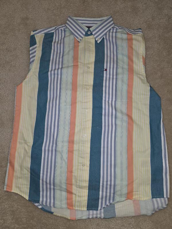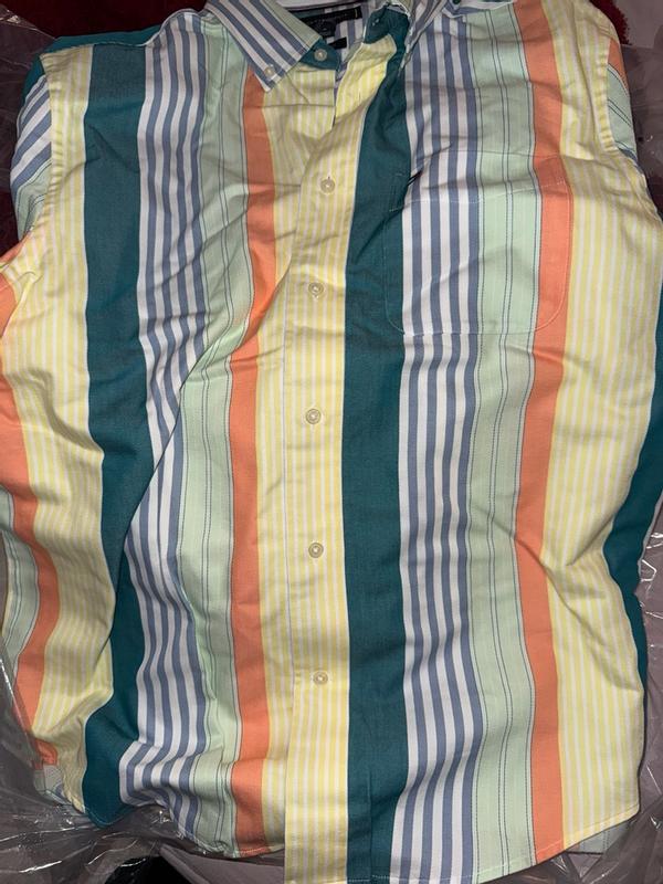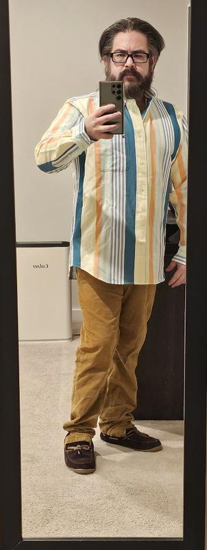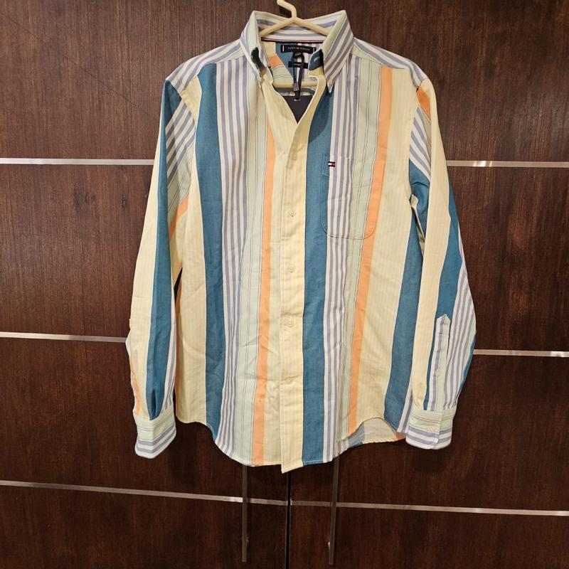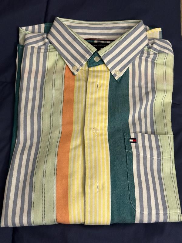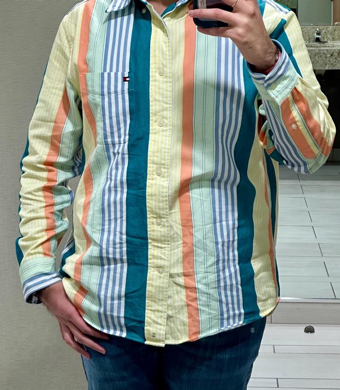 ** I got this shirt in return of my honest review ** Upon first look, it felt and looked premium because it has a nice weight to it without being too heavy for normal use. The thickness also adds to the premium feeling. It doesn’t make you feel too hot or even too cold actually. The biggest complain I have is that it wrinkles extremely easily which I wasn’t expecting given the feel of the material. L One of my photos show how much it wrinkled up within the first 30 mins. I didn’t realize it was relaxed fit when I was opting for this but that meant that even though this shirt fits me on my shoulders, it does look a little baggy. Personally I don’t mind semi bright/vibrant colors so this shirt was nice even for office. But some might not like how vibrant these colors are which the photos don’t really show. This shirt did get quite a lot of compliments today and it’s more targeted to younger crowd for sure. If Tommy Hilfiger were to make a wrinkle-free shirt like this, it would definitely sell more and get a 5 star from me.
