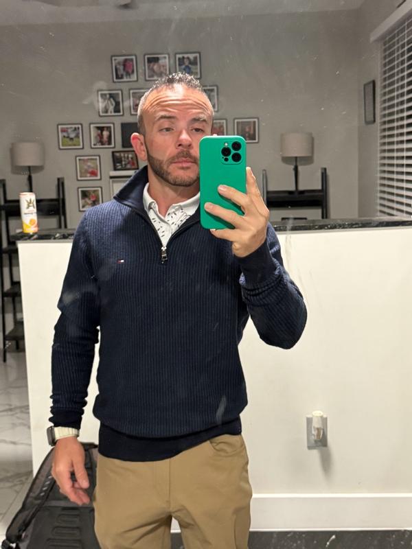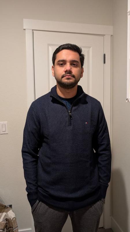 I have been using my Tommy Hilfiger sweater for some time now and honestly I really like it. The fit is perfect and true to size. The design is very chic and modern. It is quite warm when worn and the fabric is very breathable. What i like about it is the mock neck and zip which makes it look very elegant and can be dressed up or down depending on the occasion. Overall, I love it.