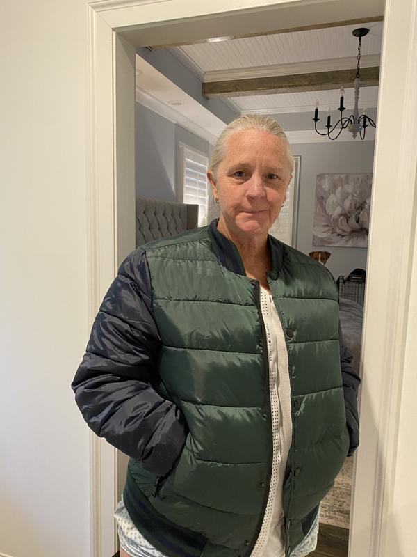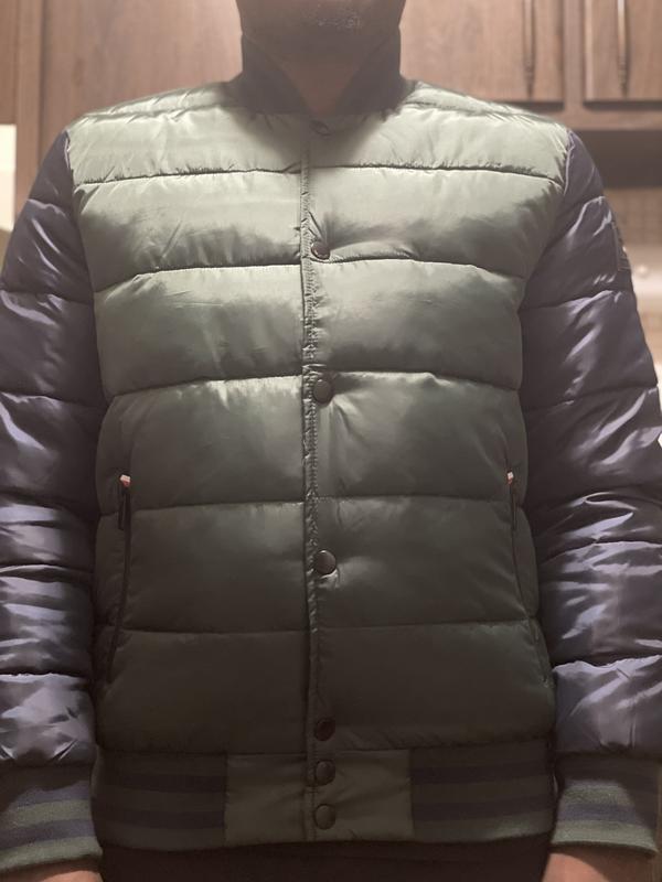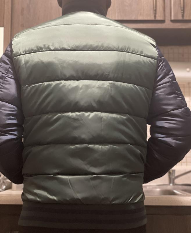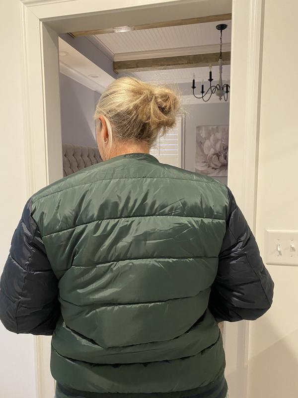 Bubble coats are coming back into style This perfect to wear as a lightweight jacket or if you want to add some warmness with a hoody under I thought the green and blue would be a weird color Combo but it looks great with jeans or joggers