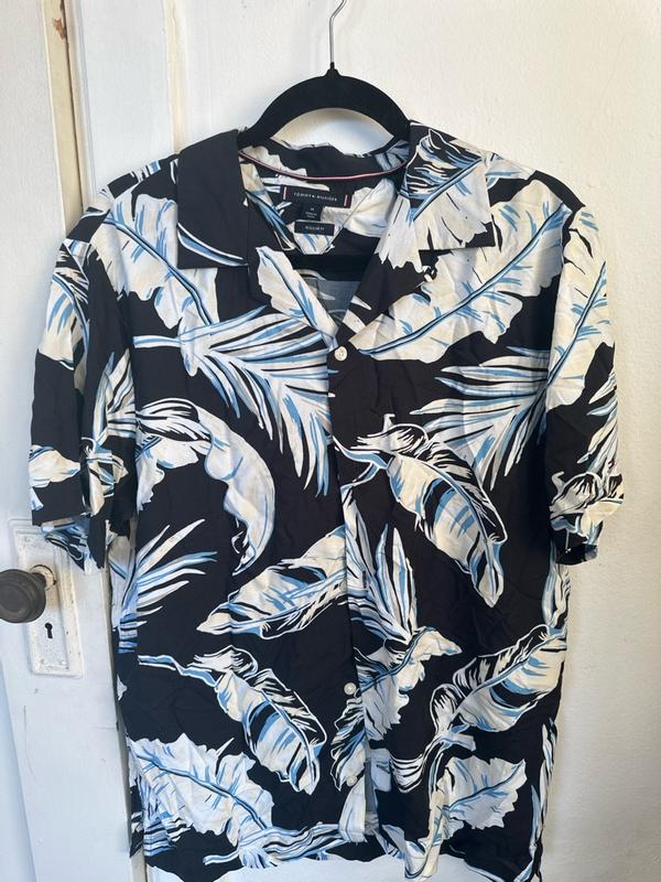 The fabric is flowy and breathable and I love the pattern, but this shirt runs 2 sizes too large. Comparing this to another Tommy Hilfiger shirt of the same size (M), you can see it's way bigger. It fits me more like an XL.