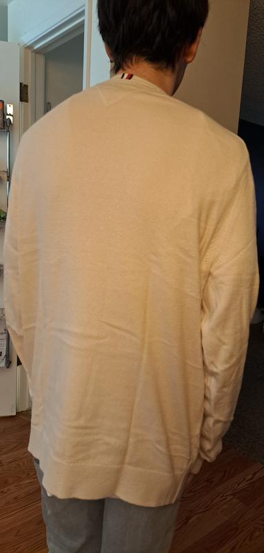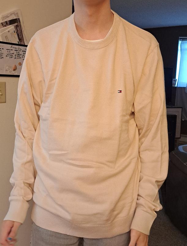 This crew neck is so soft, light and incredibly comfortable. It has the quality and craftsmanship I've come to expect of Tommy Hilfiger. The cashmere is so soft to the touch and very elegant. The size is a true medium. It's also easy to style with a pair of black jeans and white collared shirt underneath for a smart and well put together look.