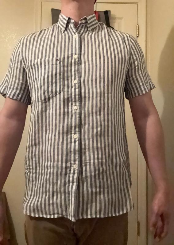 Great looking shirt and perfect for the summer weather. The fit is true to size, lightweight linen, very breathable. Classic strip design makes it versatile for casual or semi casual outfit. Overall recommend!