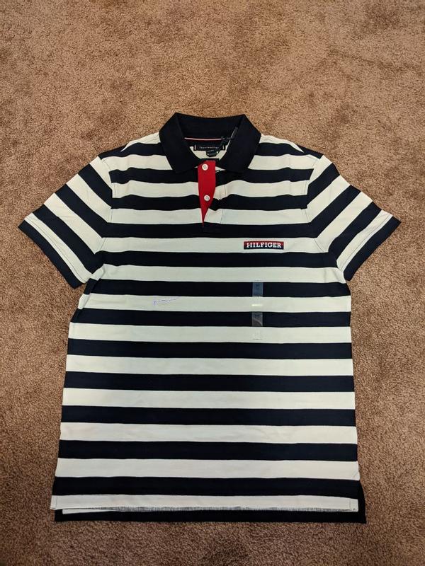 I received my Tommy Hilfiger stripe polo shirt a few weeks ago, and i am very happy with the way it looks and feels. I also like how it looks on my son. The shirt is made of very strong fabrics and is well put together.