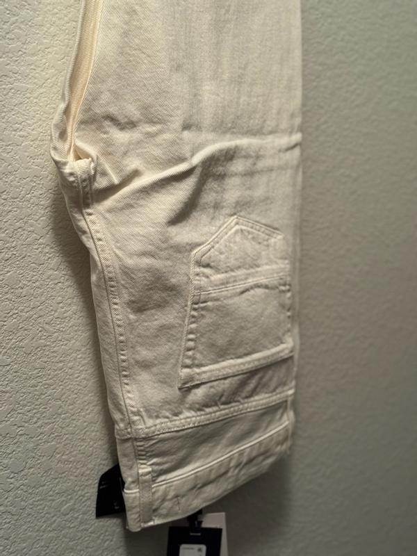 These fit sooo good. The color is more Ecru than white which was perfect for me. The are slim fit and sits perfectly at the waist. I love how thick and well made these are.