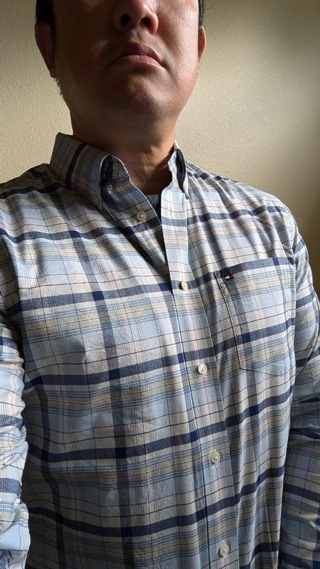 The shirt has a nice checkered pattern which probably fits best with spring weather. the shirt itself is pretty thin so don't expect warm cozy fall like feeling as this is a little bit more crisp and probably better suited for business attire rather than winter shirts around town. fit wise, I feel like it is just a little bit big but nothing too egregious. overall, I find the shirt to be pretty stylish, really comfortable, lightweight, and purposeful for spring weather or business attire.