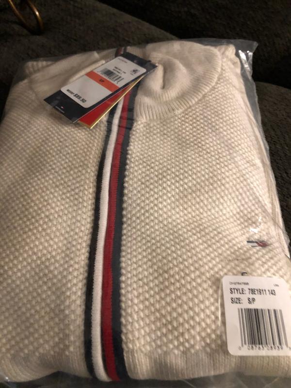 I love full zip sweaters - perfect to throw on around the house and nice enough to wear out as well. The fit and fabric are very nice weight and are comfortable - and the collar wears nicely as well (sometimes this can be an issue in full/quarter zips, but no issues here). Not too crazy about the contrast piping on the middle zipper - I don't notice it as much if I wear it open but it is a bit distracting when wearing zipped up.