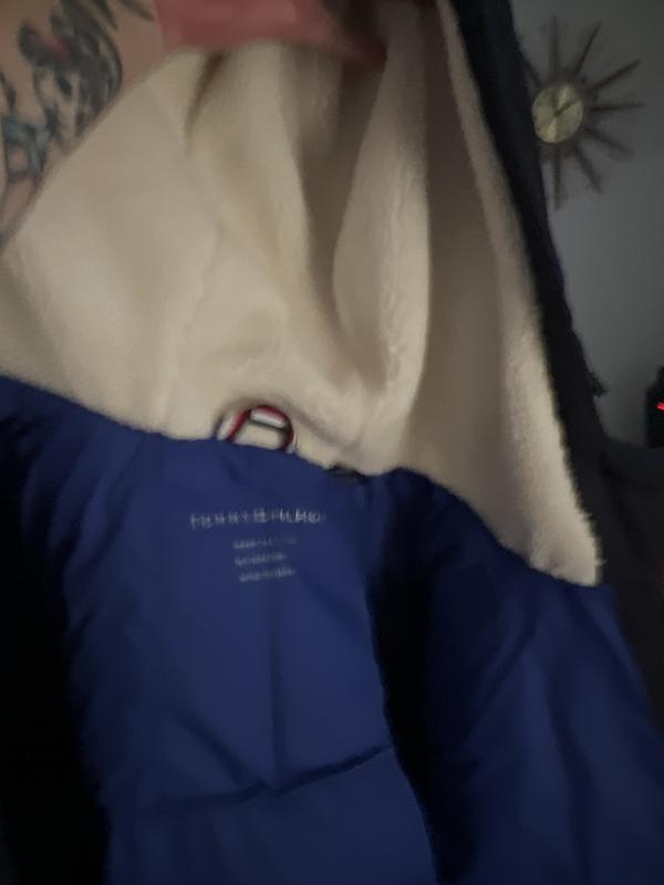 I asked many times to ensure that this jacket was not just sherpa-lined hood but also the jacket was sherpa-lined. I received confirmation of jacket too being sherpa-lined. Well, not so! jacket is nylon-lined (not even fleece). Not going to keep him warm.