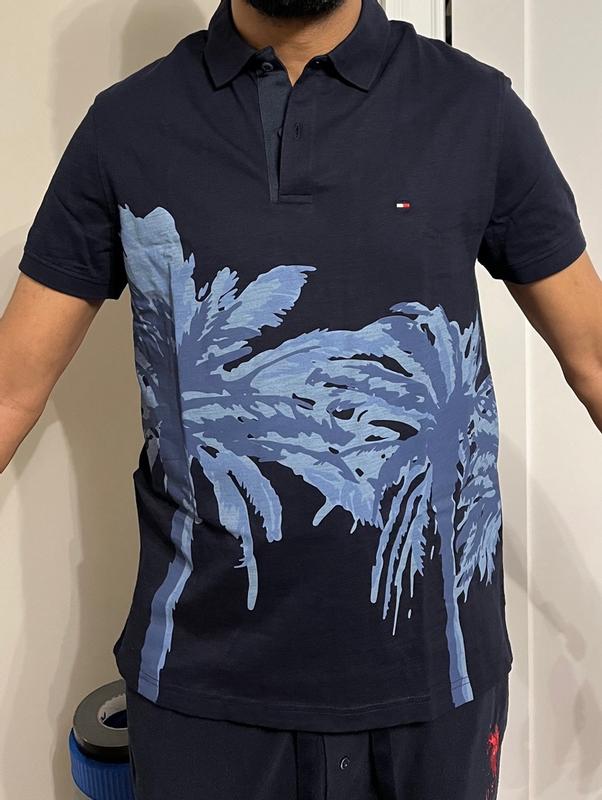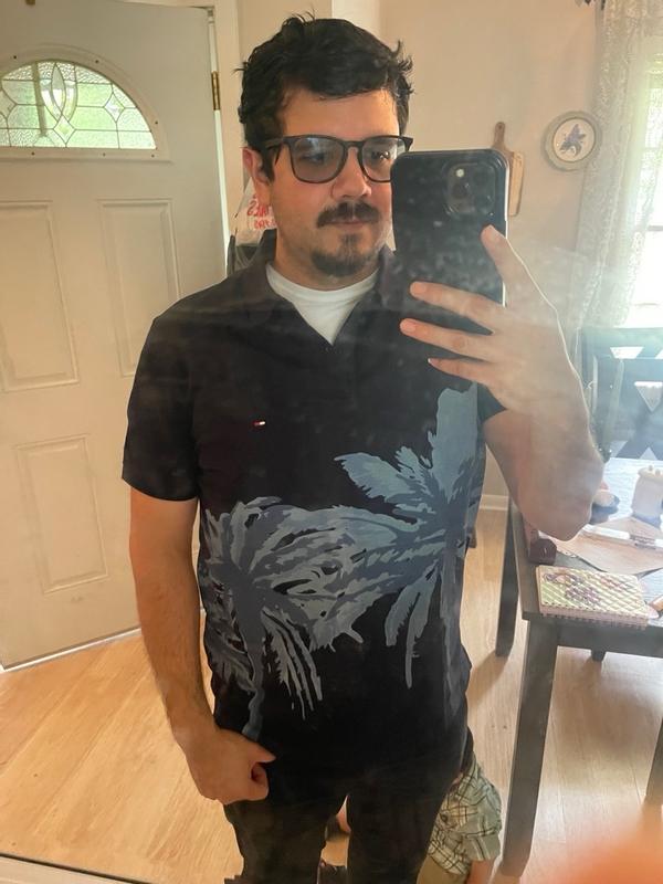 Men's Short Sleeve Palm Print Polo Shirt