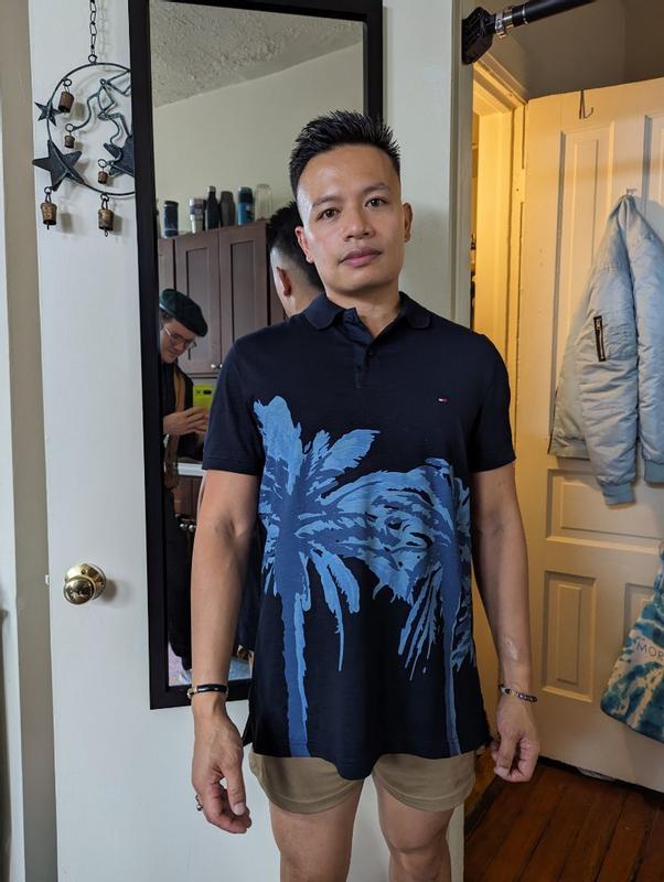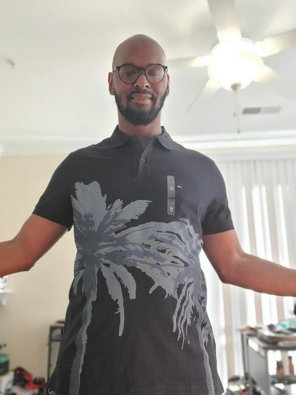 The Palm placement Polo is absolutely beautiful high quality material fit perfectly and it's very comfortable and definitely in style I highly recommend it