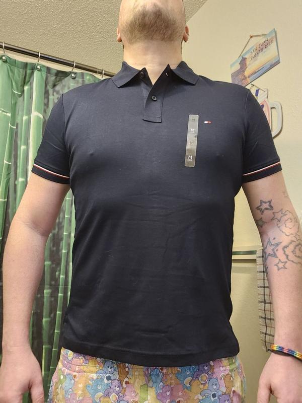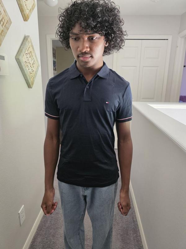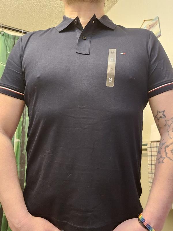 Tommy Hilfiget liquid cotton RWB cuff slim polo is easy to care for and well crafted. Comfortable fit, practical for daily wear, and durable fabric holds shape after washing.